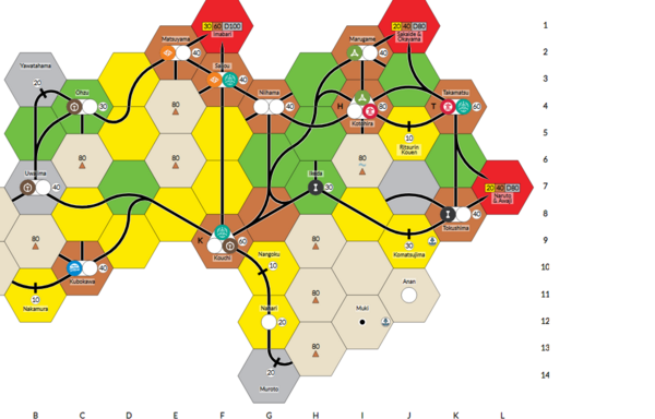 Example: If you had a station in Nahari, and two “2” trains, you could run two routes. One from Muroto to Nahari for 40 dollars, and one from Nangoku to Nanari for 30. A total of 70 for the operating round.